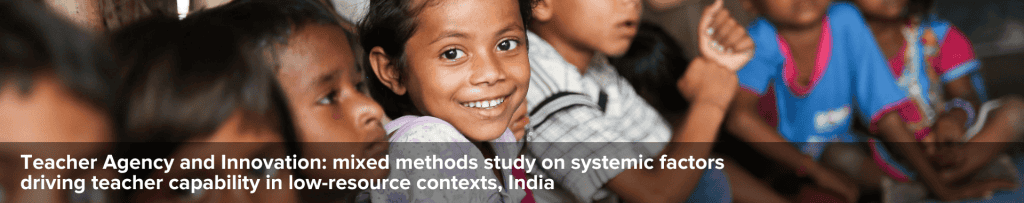 For Schools2030, enhancing teachers’ capacity to measure, design and implement education innovations in the classroom, as well as to engage in education sector dialogue are key pathways to achieving SDG4. Given the complex and varied education systems in which Schools2030 is operating, there is a need to better understand what is meant by “teacher agency”, how this is valued and perceived in different contexts, and how teacher agency does (or does not) lead to improved classroom practice.